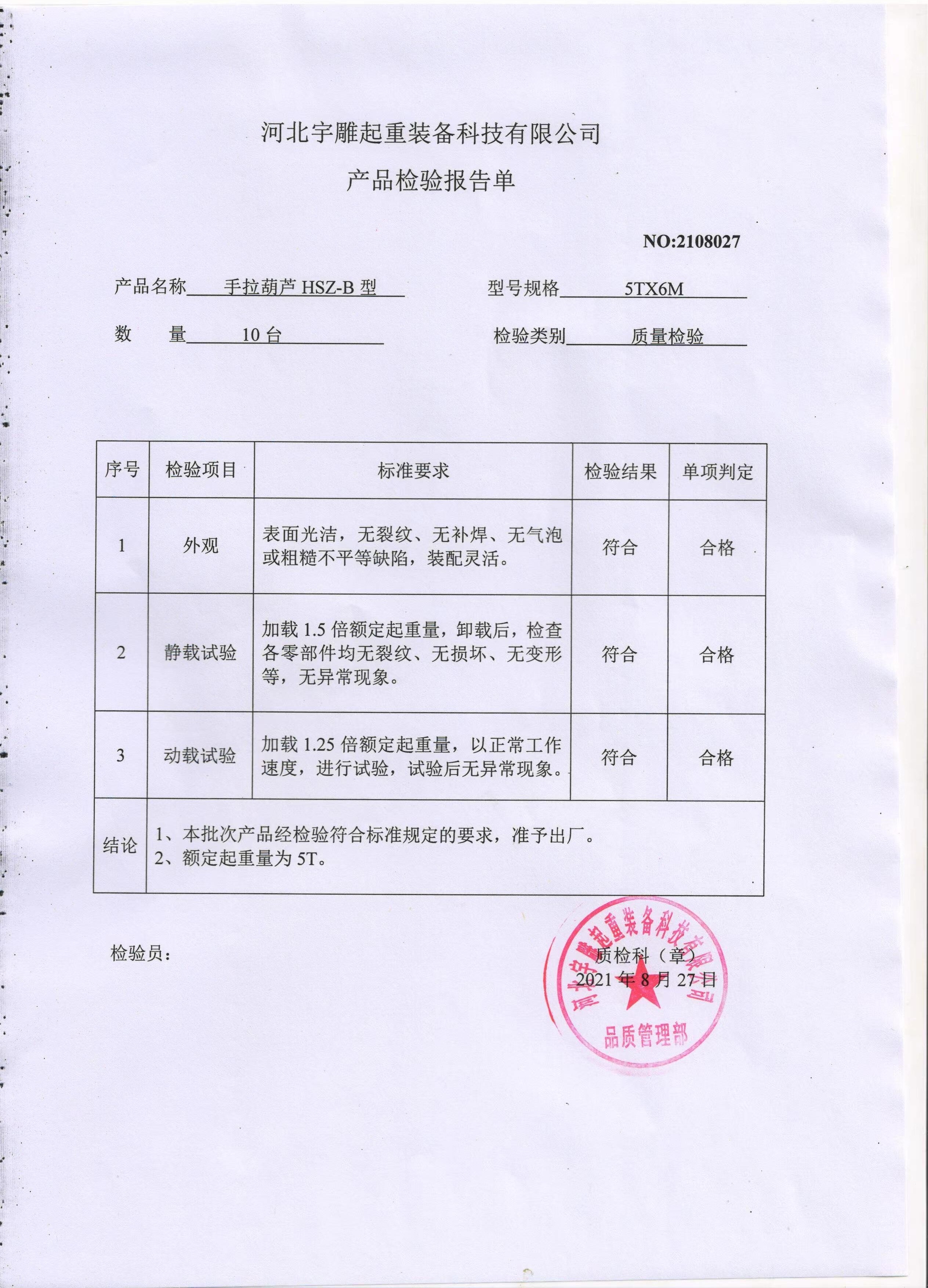 • 商品名称:宇雕 HSZ-B 3T*6M ^ 手拉葫芦 JB/T7334 双链