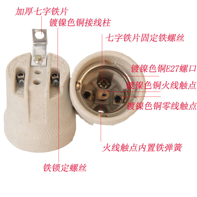 • 商品名称:FANCYCHIC E27 陶瓷灯头带七字铁片(铜芯) 灯口(单位:个)