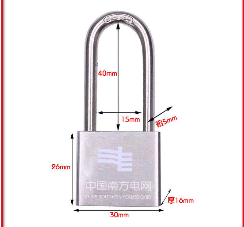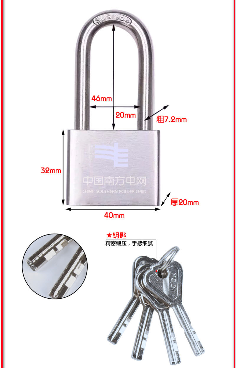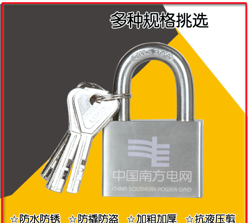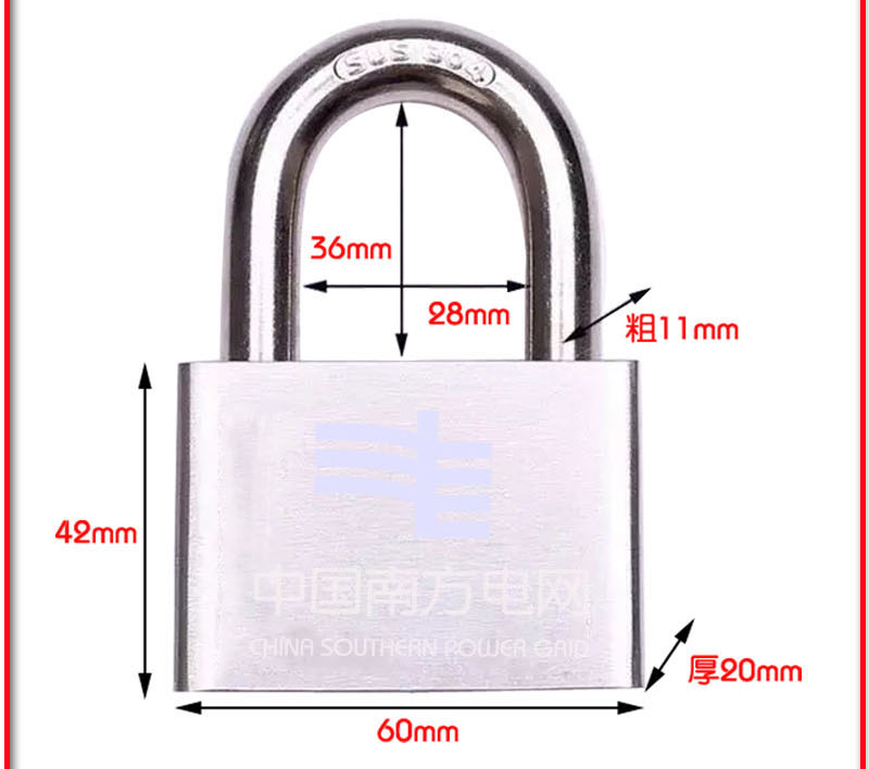 商品名称: PNN KEY-R635 工业304纯不锈钢机械挂锁 电力表箱锁 宽50mm 梁30mm 单位:个