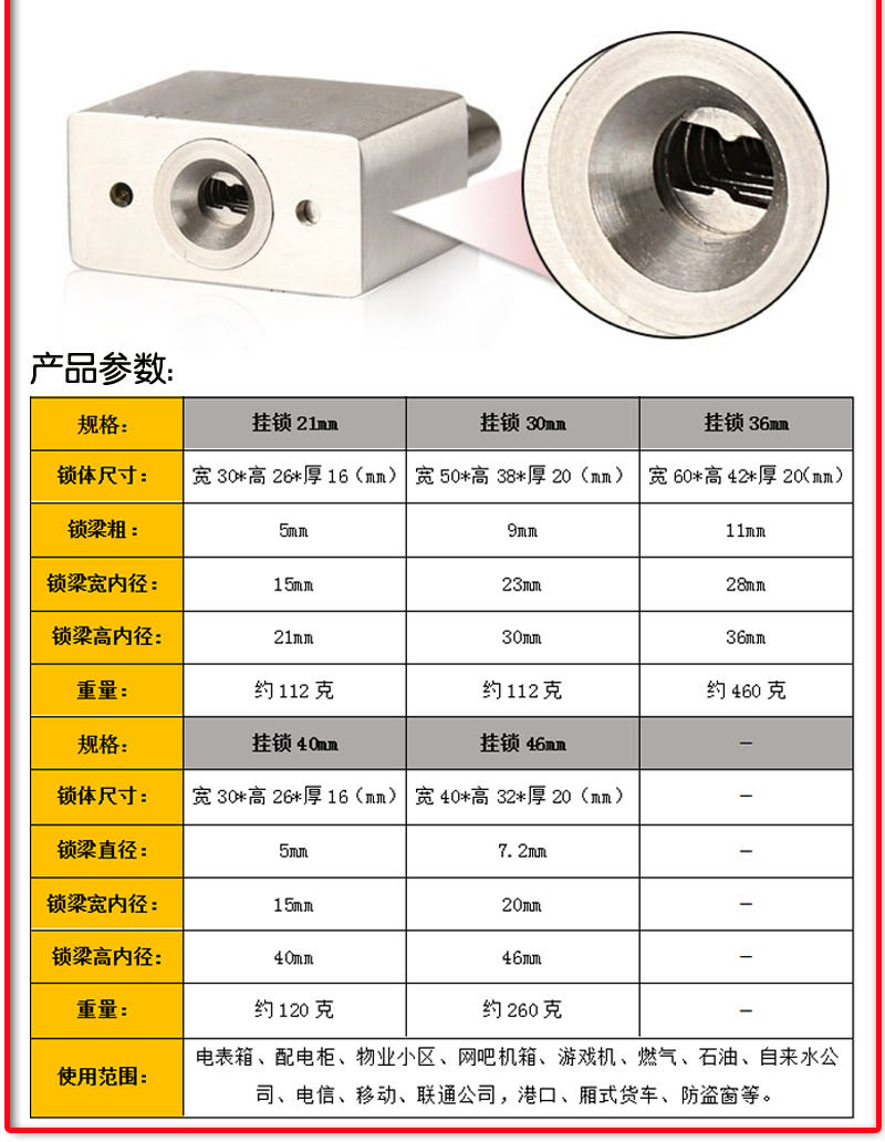 • 商品名称:PNN KEY-R635 工业304纯不锈钢机械挂锁 电力表箱锁 宽50mm 梁30mm 单位:个