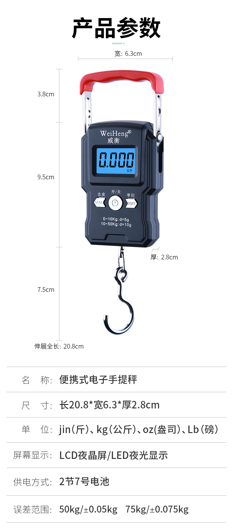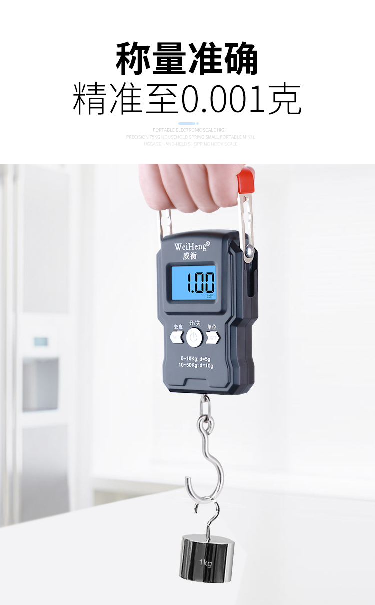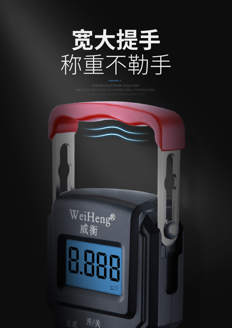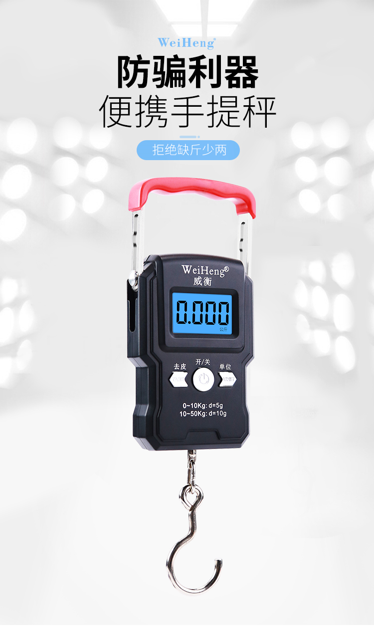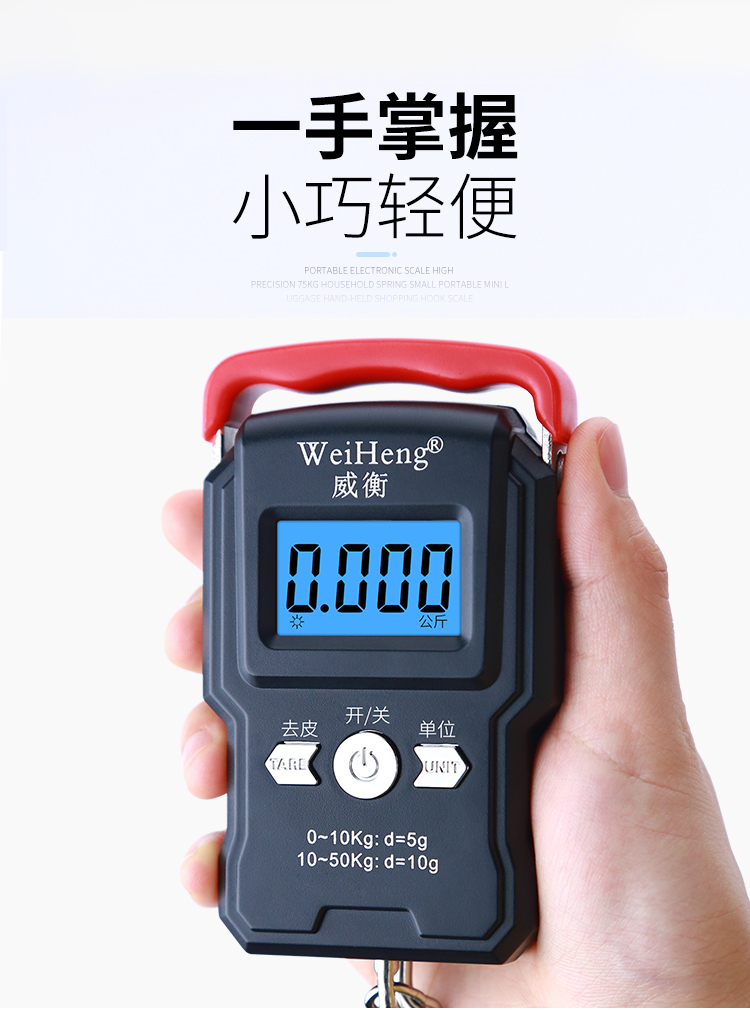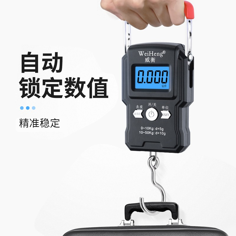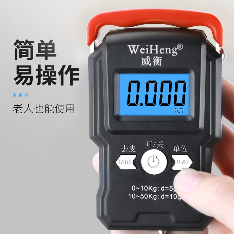 • 商品名称:威衡 精准手提电子秤高精度便携式小型弹簧秤 至尊中文版50kg+带卡槽(单位:个)
