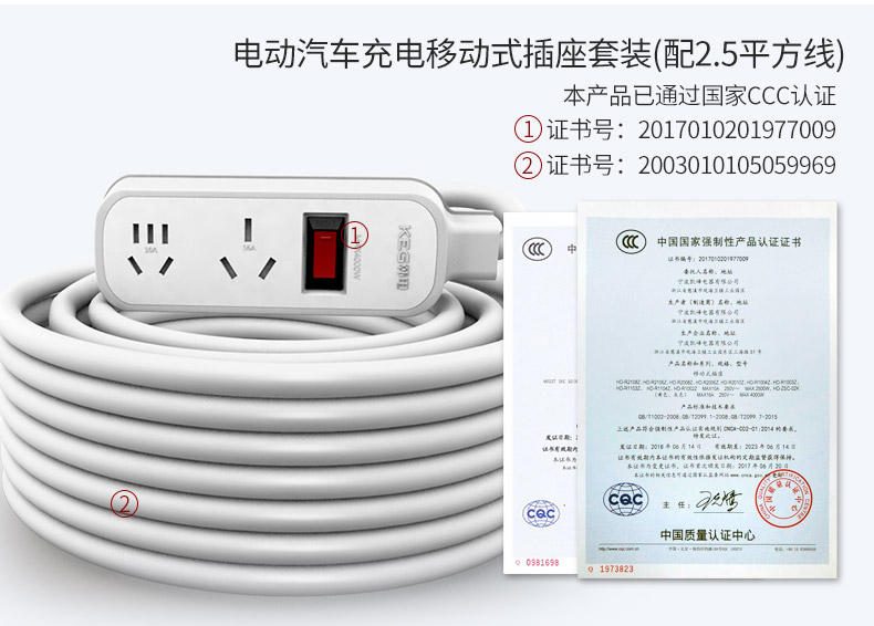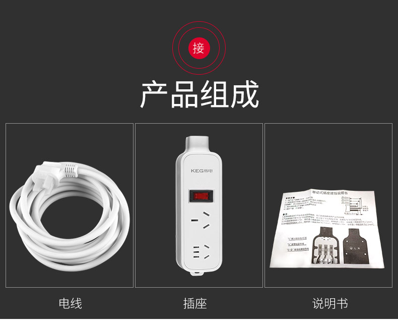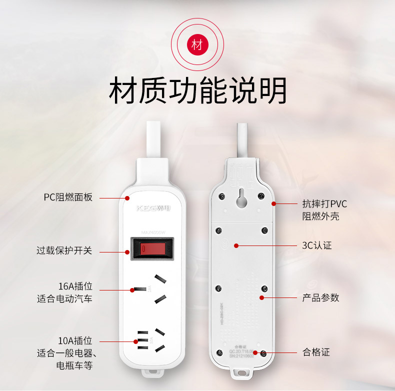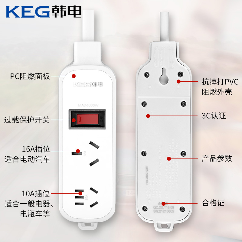 • 商品名称:韩电 KEG HD-ZSC-02K 充电移动式插座套装 配2.5平方线 16A/4000W 全长15米