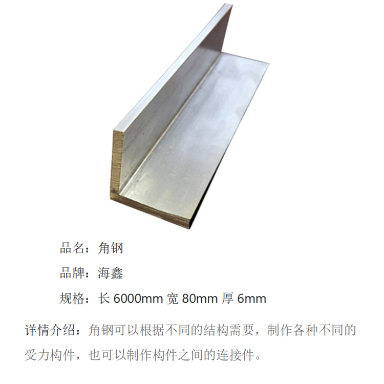 • 商品名称:海鑫 Q235 角钢 长6000mm宽80mm厚6mm 银(单位:千克)
