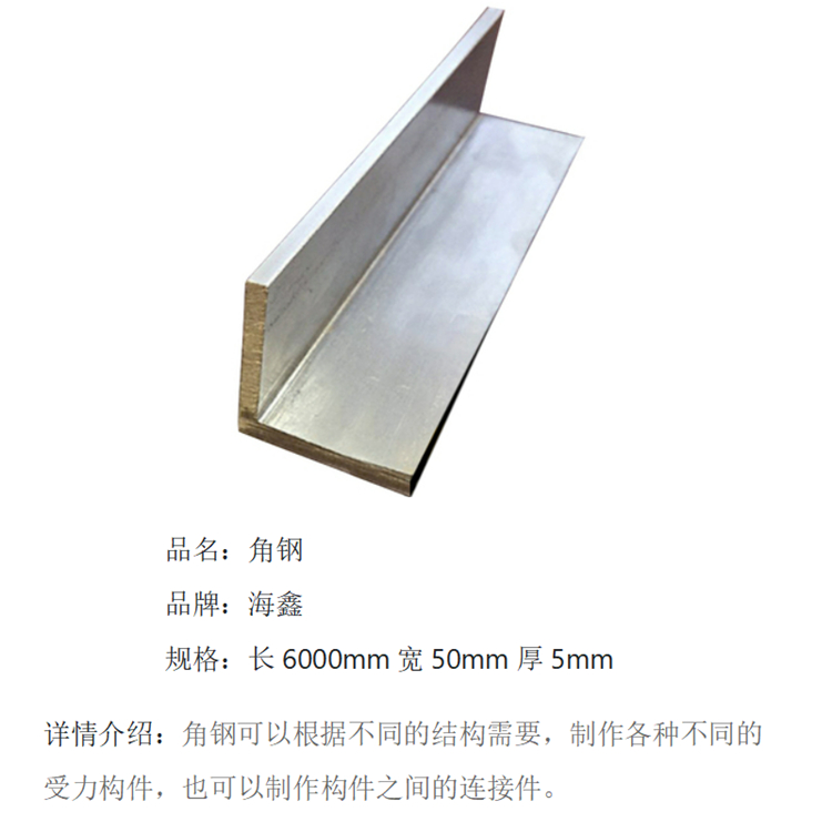 商品名称: 海鑫 Q235 角钢 长6000mm宽50mm厚5mm 银(单位:千克)