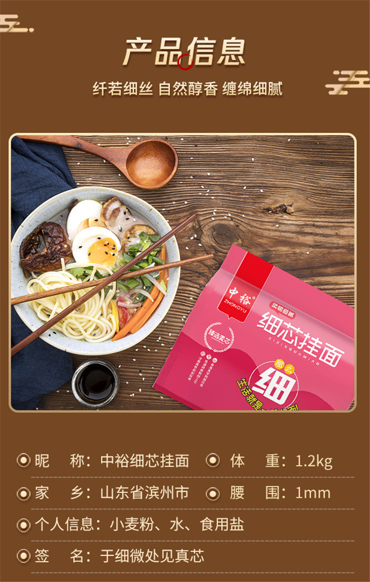 • 商品名称:中裕 细芯挂面100g*12组合装(单位:包)