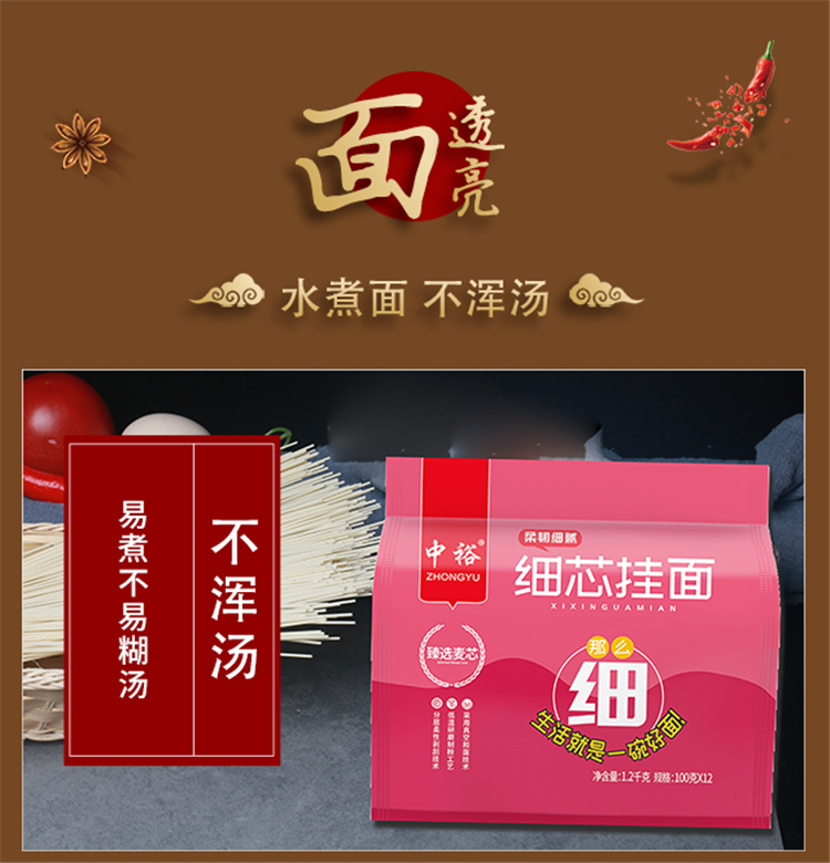 商品名称: 中裕 细芯挂面100g*12组合装(单位:包)