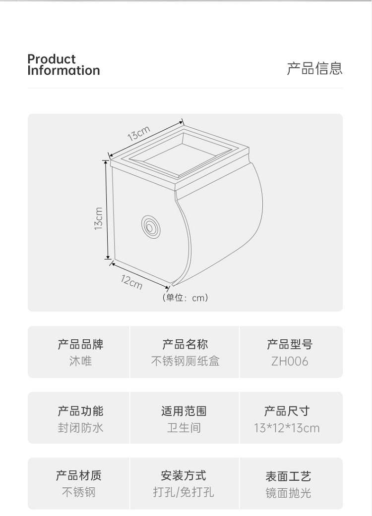 • 商品名称:沐唯 ZH006 免打孔厕纸架(单位:个)
