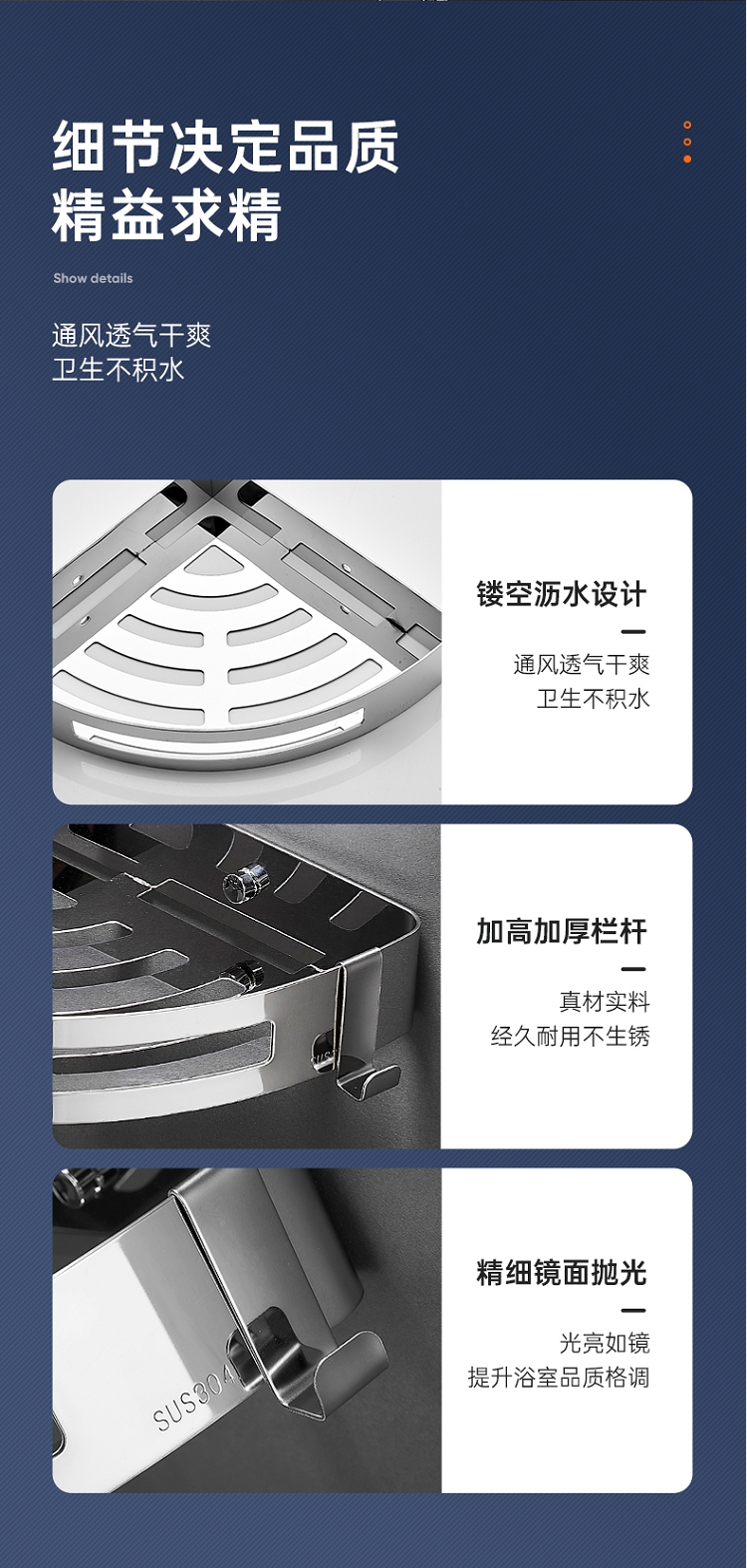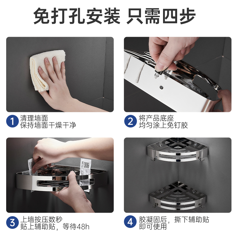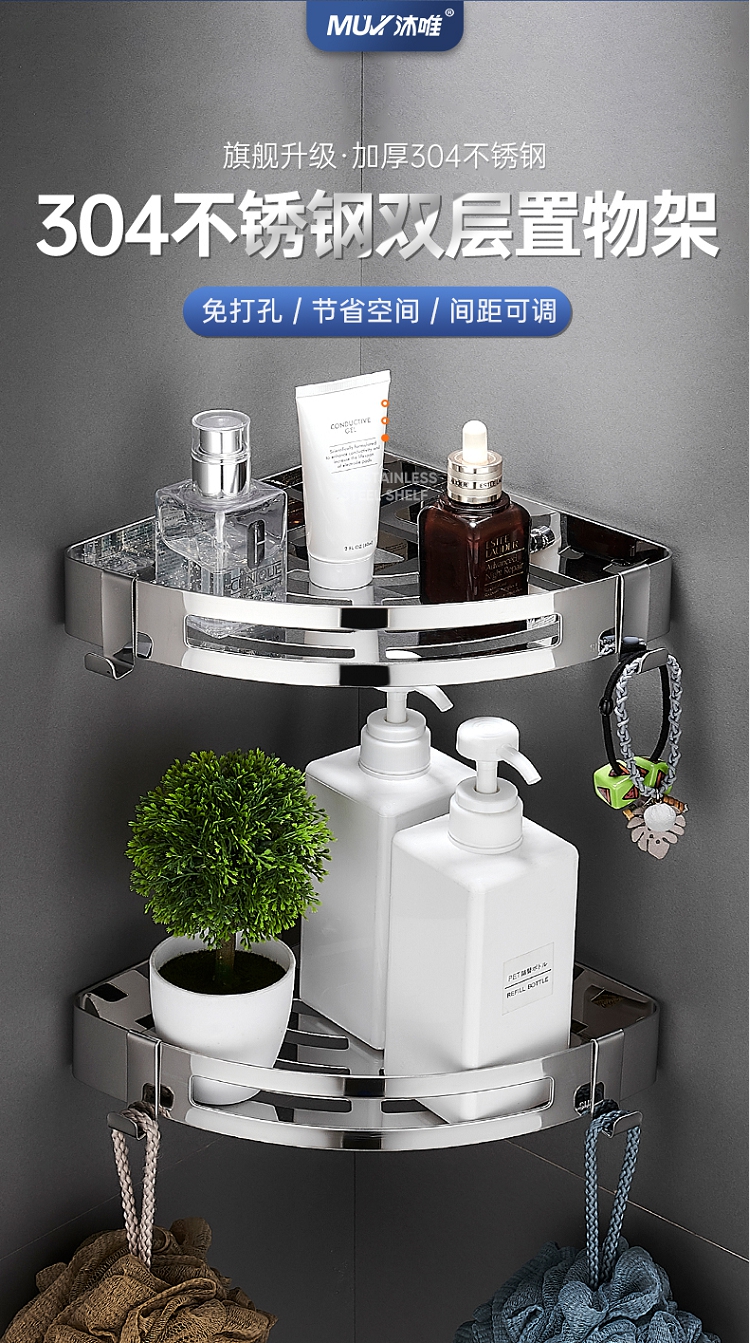 生活用品  > 浴室用品  > 浴室置物架  >  沐唯  >  沐唯 JLB02 304不锈钢双层角篮 转角置物架(单位:个)