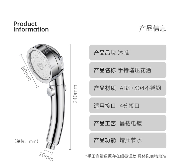 • 商品名称:沐唯 009 增压花洒淋浴喷头 卫浴套装三件套 配色 (单位:套)