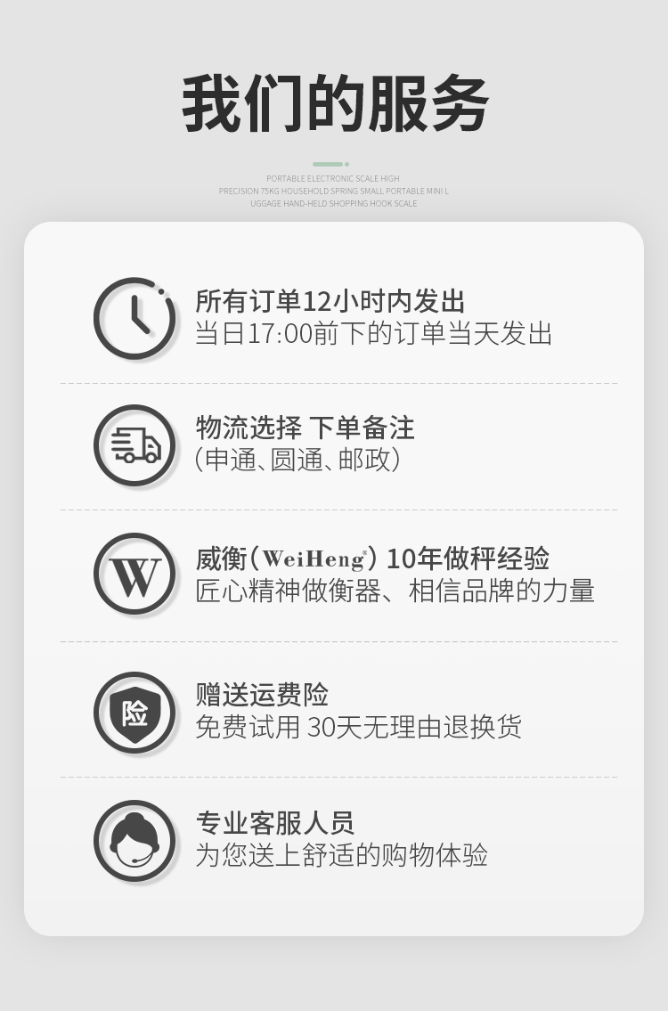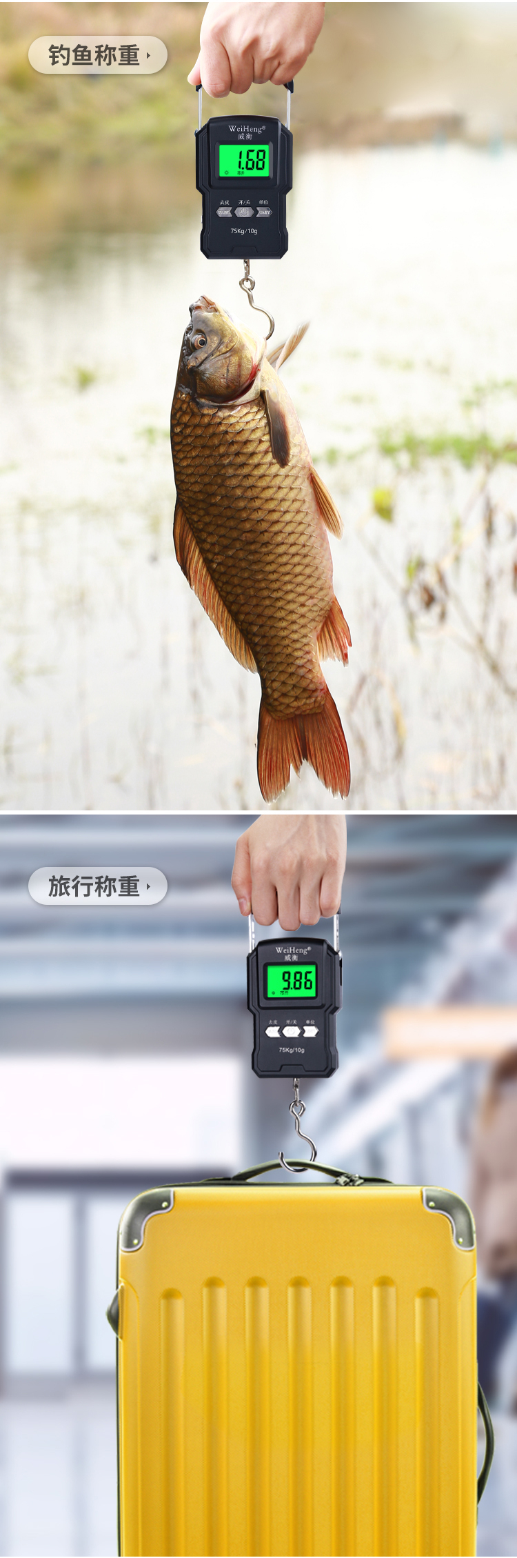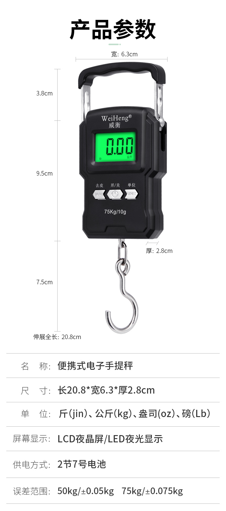 • 商品名称:威衡 75kg中文版升级 高精度手提电子秤(单位:个)