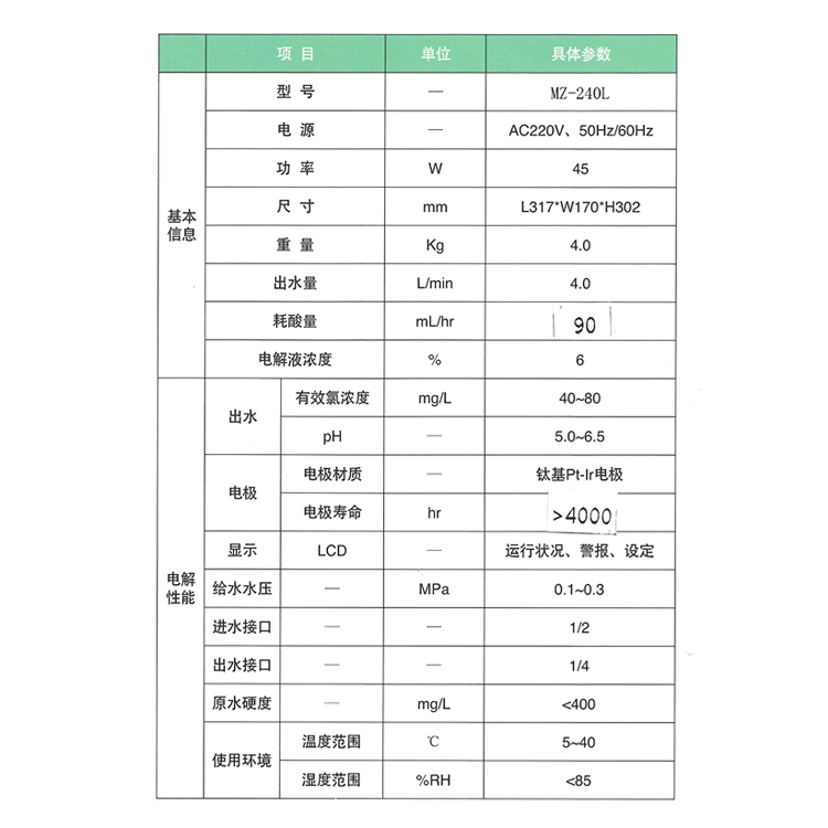 商品名称: HEALTHKNIGHT MZ-240L 次氯酸消毒液发生器
