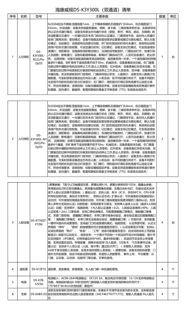• 商品名称:海康威视 DS-K3Y300L 人行翼匝