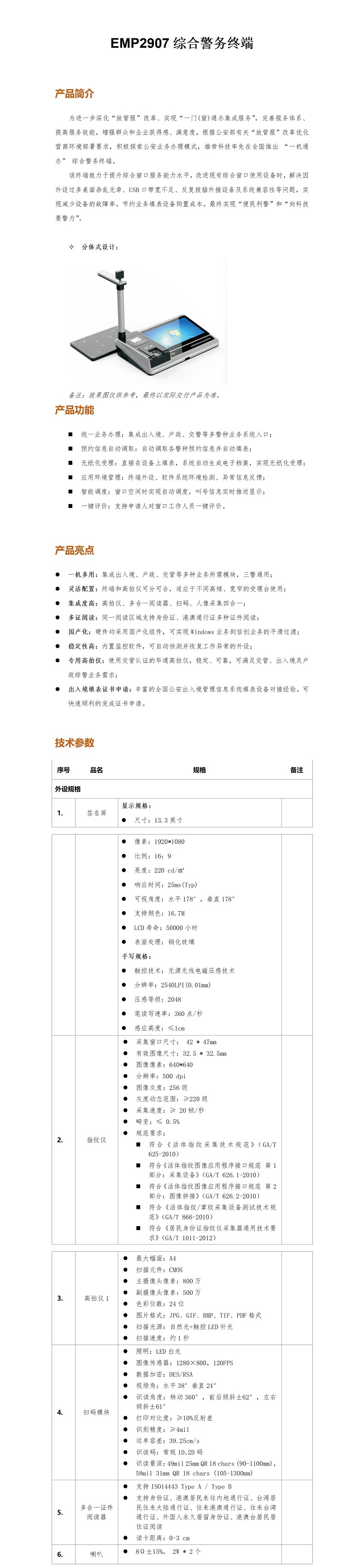 雄帝/EMPTECH EMP2907(QJP) 综合警务终端