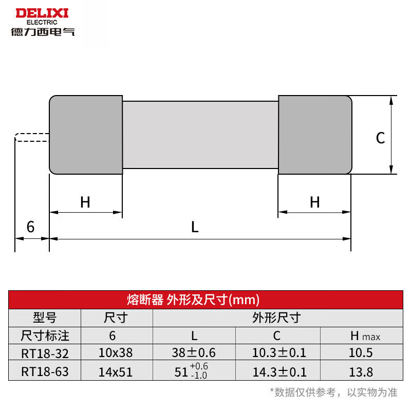 商品名称: 德力西 RT14(RT18) 6A Φ14X51 插入式熔断器