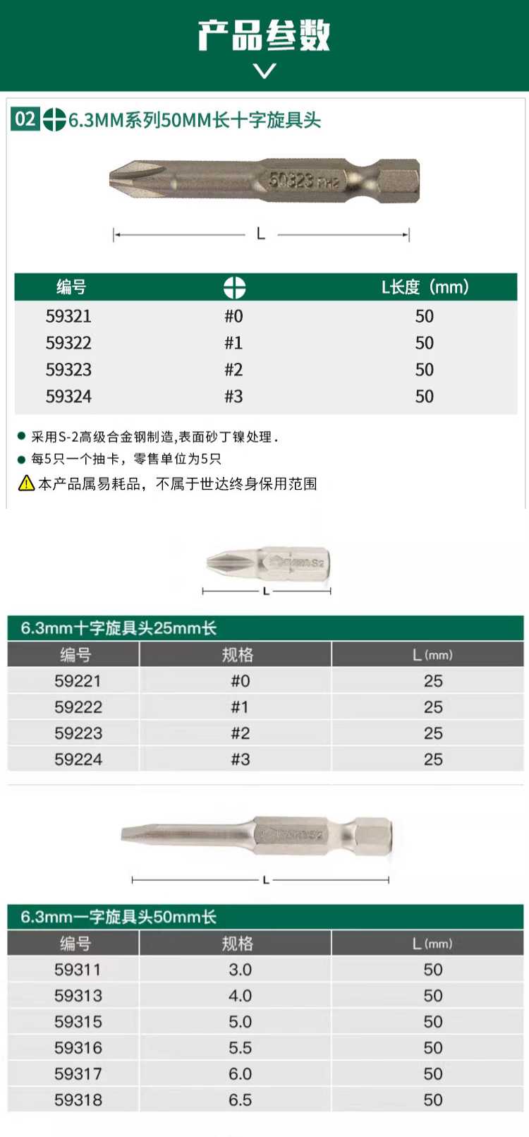 • 商品名称:世达/SATA 5件套6.3MM系列50MM长3MM 一字旋具头 5件套6.3MM系列50MM长3MM