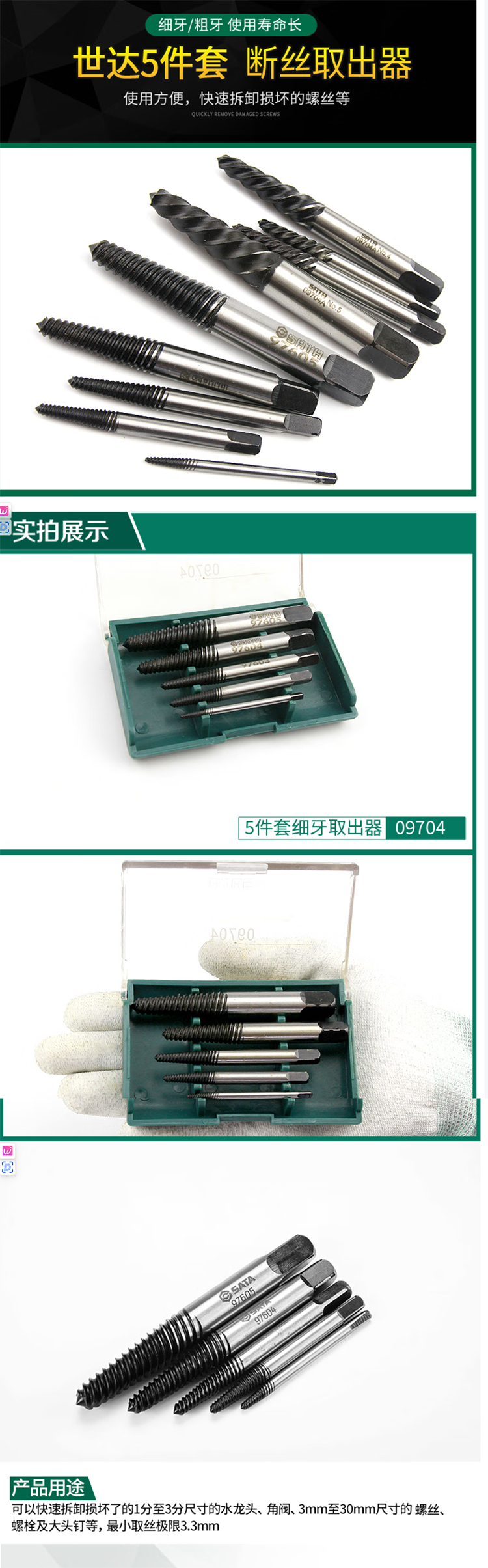 • 商品名称:世达/SATA 5件细牙组套 断丝取出器 5件细牙组套