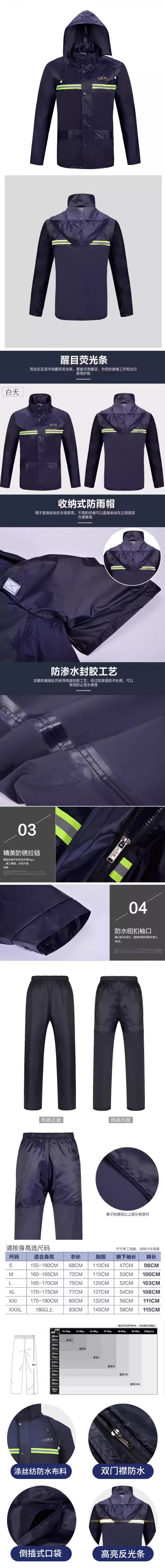 商品名称: 天堂 带反光条/XXL 藏青分体式雨衣 带反光条/XXL