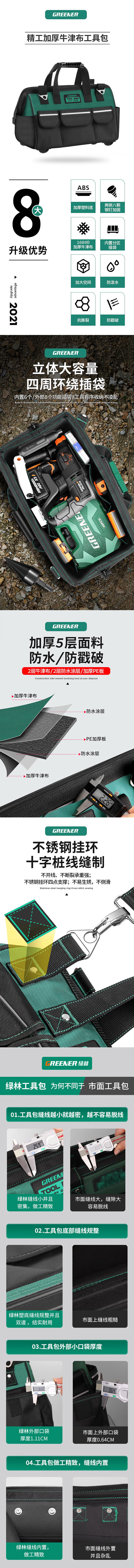 • 商品名称:绿林 16寸加厚牛津布(4个防滑脚钉)肩带 多功能手提工具包