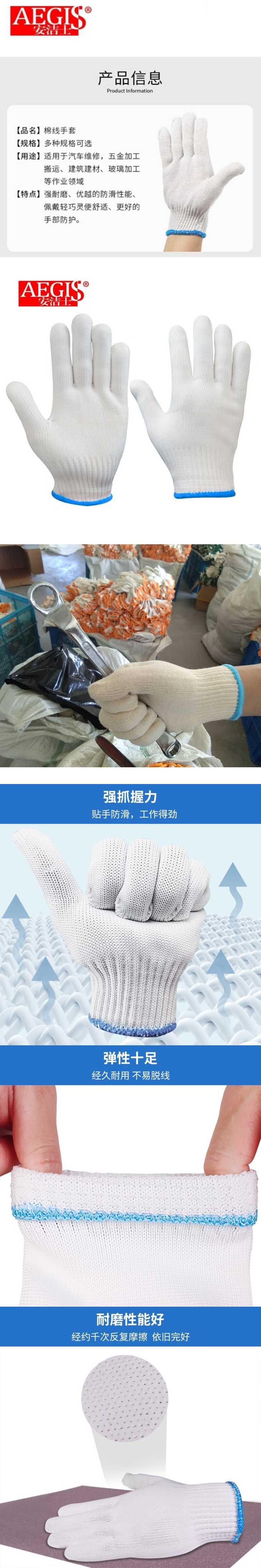 商品名称: 安洁士 10针/900克/白色 棉纱棉线尼龙耐磨线手套 10针/900克/白色