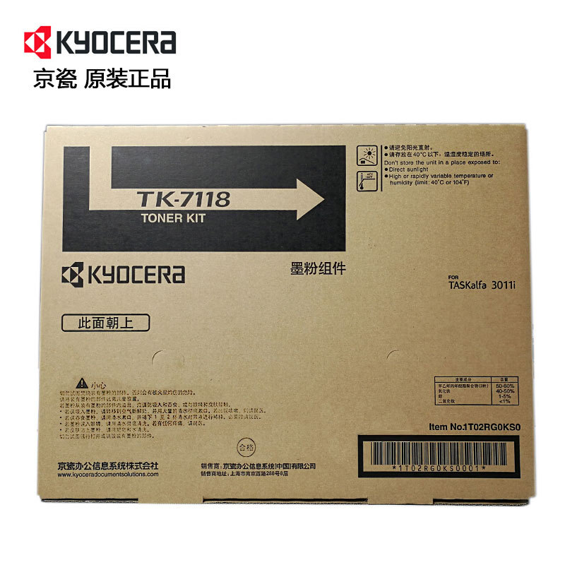 商品名称: 京瓷/KYOCERA TK-7118 A4 5%覆盖率约2.4万页 粉盒 适用机型:Kyocera TASKalfa 3011i 黑色
