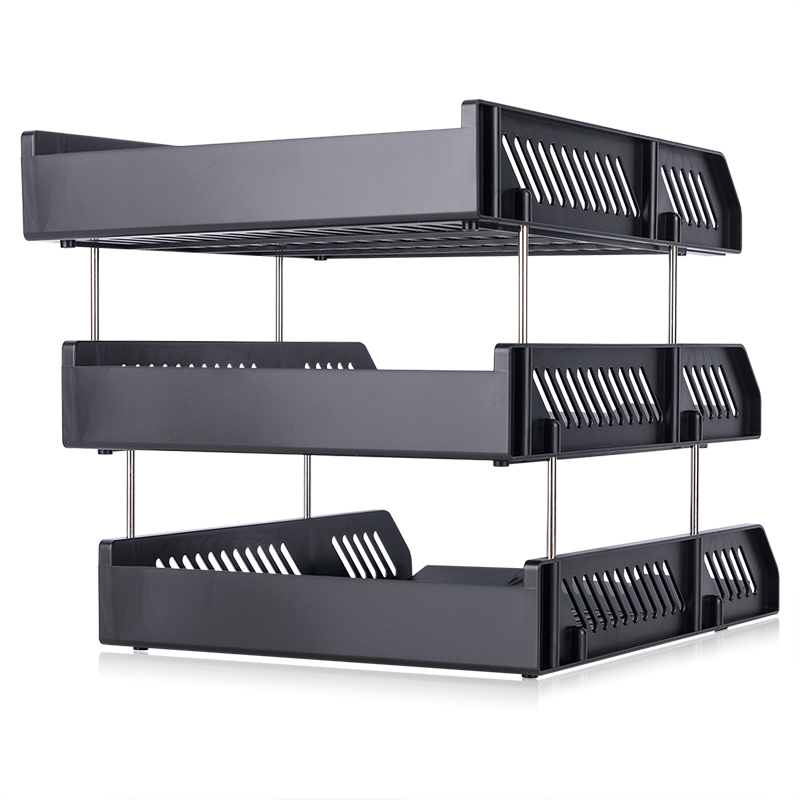 得力/deli 9209 自由拆卸组装三层 文件盘 三层镂空收纳文件座 黑色