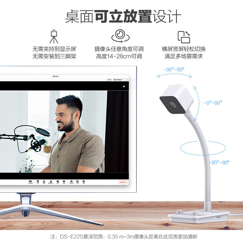 • 商品名称:海康威视/HIKVISION E24S 电脑摄像头 400万高清桌面立式USB内置麦克风扬声器 白色