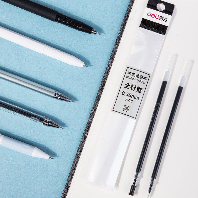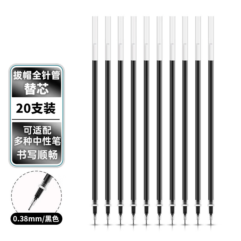 得力/deli A701 0.38mm全针管黑色中性笔笔芯 20支/盒