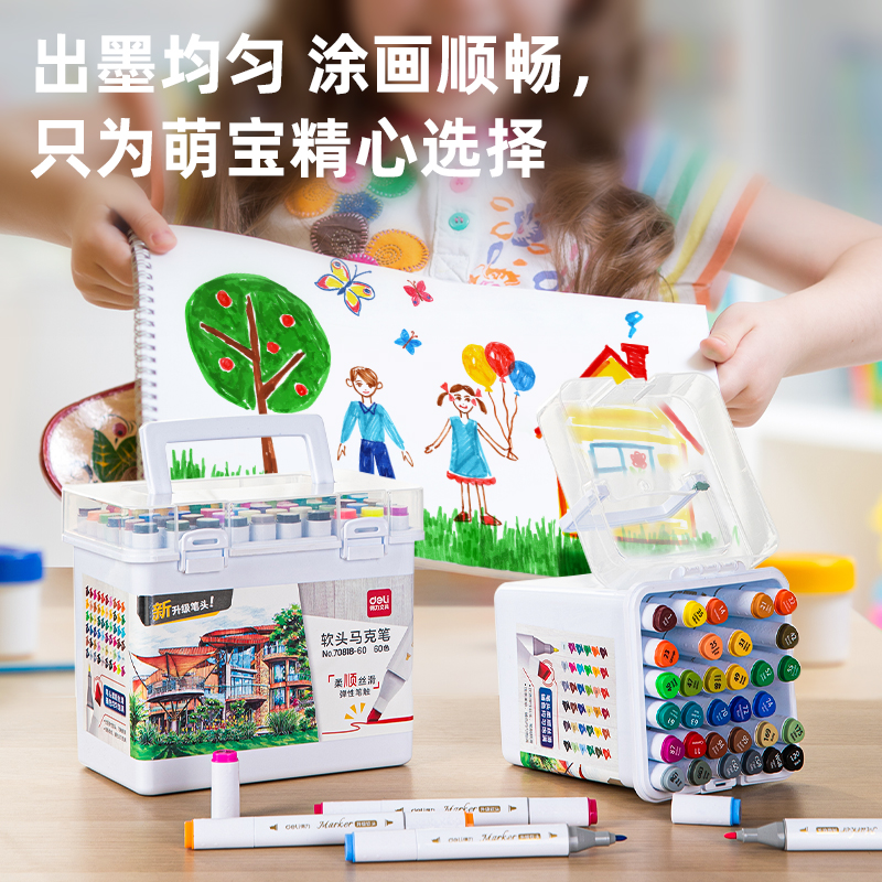• 商品名称:得力/deli 70818-60 60色软头马克笔套装 双头水彩笔