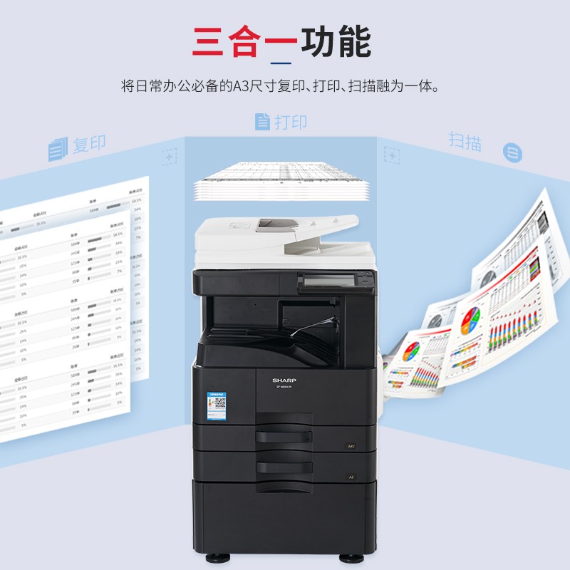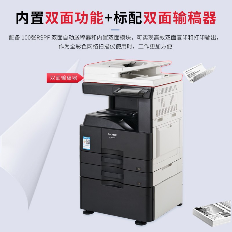 商品名称: 夏普 BP-M2851R A3打印激光自动双面网络扫描复合机 (含双面输稿器+双纸盒+工作台)