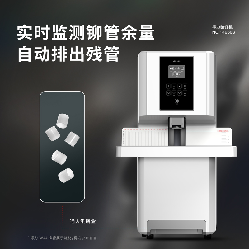 得力/deli 14660s 50mm全自动财务凭证铆管装订机 激光定位会计凭证装订机凭证文件资料热熔胶管打孔机 白色