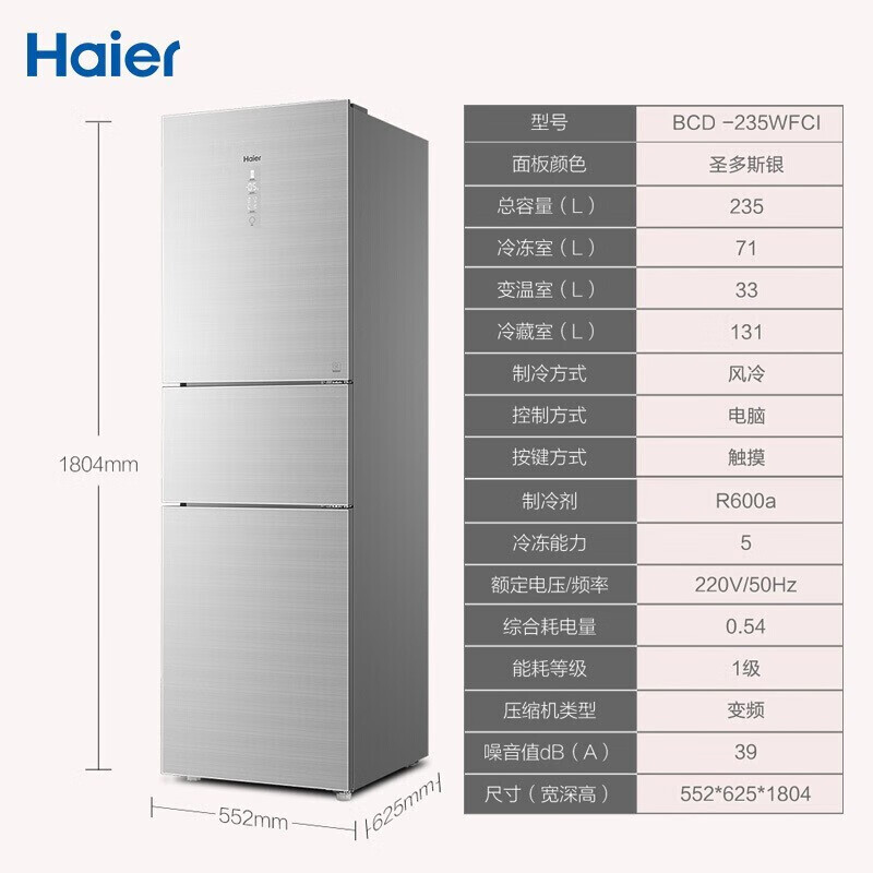 商品名称: 海尔/Haier BCD-235WFCI 三门家用风冷无霜小型变温DEO净味节能小电冰箱一级能效阻氧干湿分储BCD-235WFCI