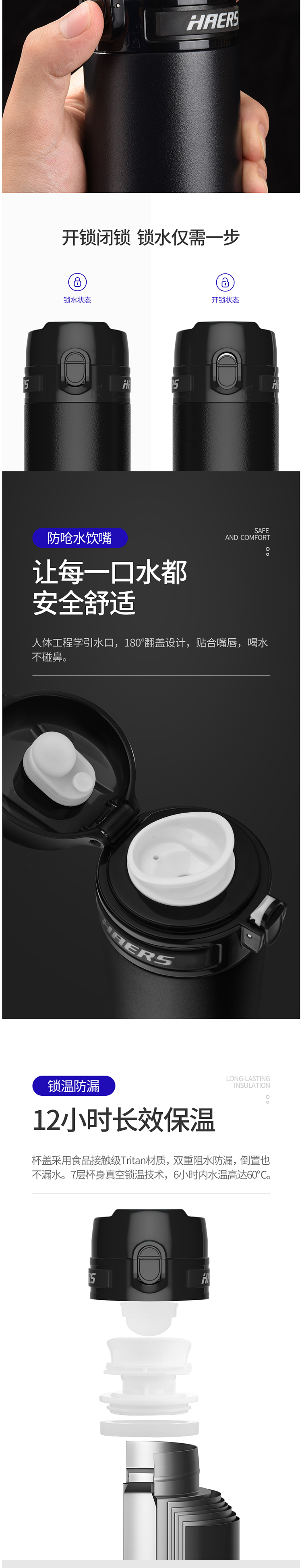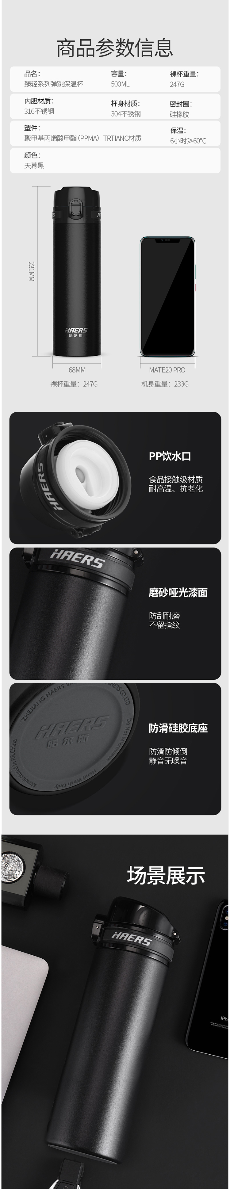生活用品  > 饮具  > 水杯/保温杯  >  哈尔斯/HAERS  >  哈尔斯 便携316 不锈钢高档保温杯 黑色(单位:个)