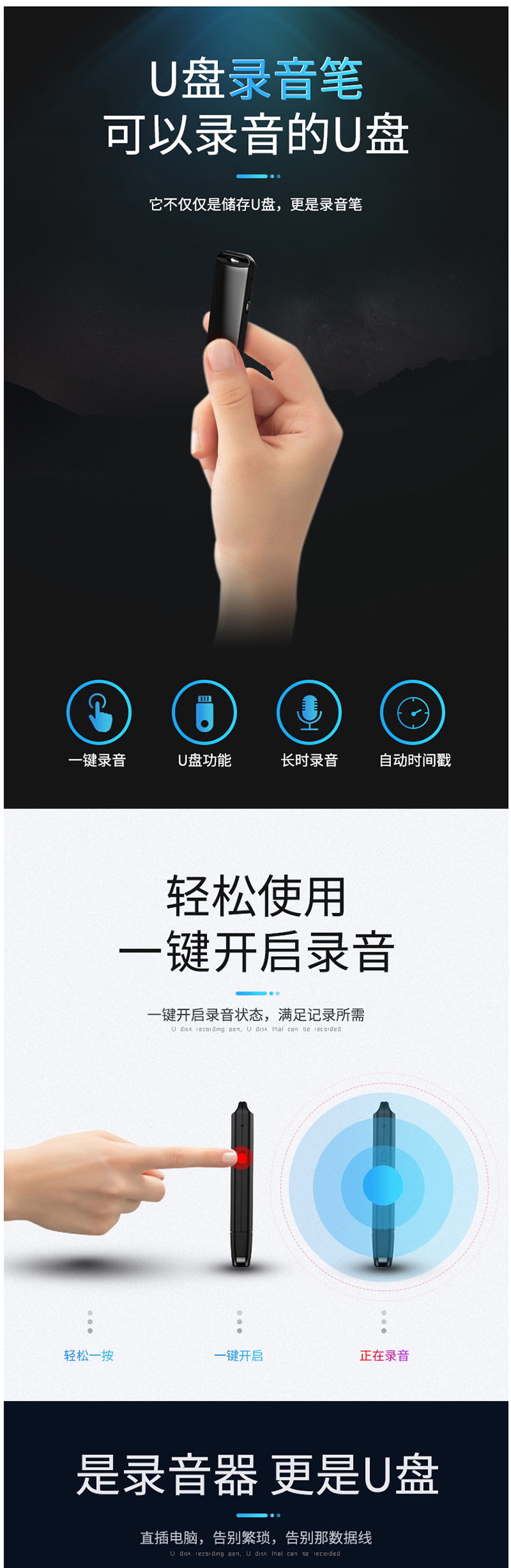 • 商品名称:JNN X32 微型录音笔 USB直插高清降噪迷你 学生工作会议录音【 8GB内存配置】(单位:个) 酷炫黑