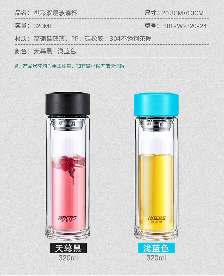 生活用品  > 饮具  > 水杯/保温杯  >  哈尔斯/HAERS  >  哈尔斯 HBL-W-320-24 双层玻璃杯(单位:个)