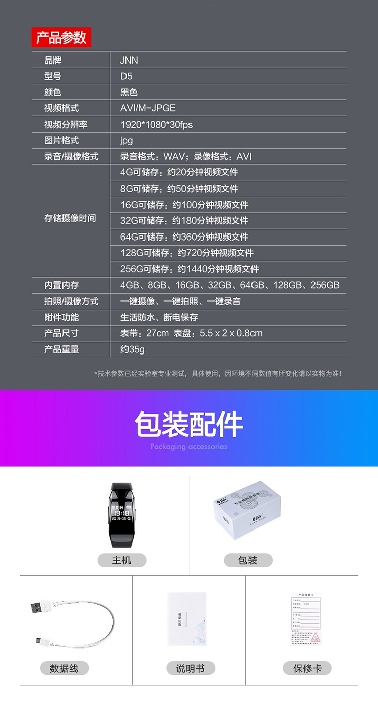 商品名称: JNN D5 256G手环型录音录像 记录仪 (单位:个)