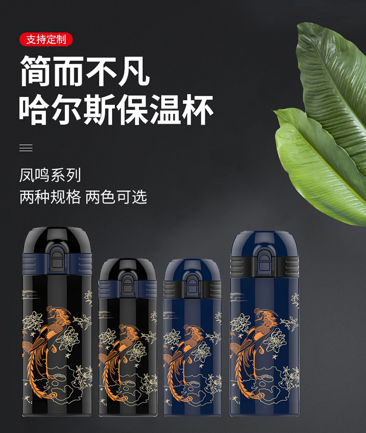 哈尔斯 HD-350-49-G 350ml 故宫文创联名款凤鸣系列 轻量真空弹跳杯(单位:个)