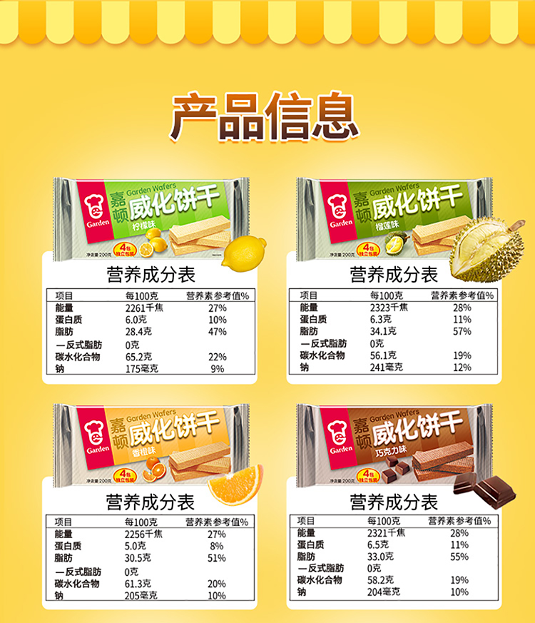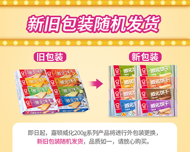商品名称: 嘉顿 香橙威化饼干 200g 单位:包