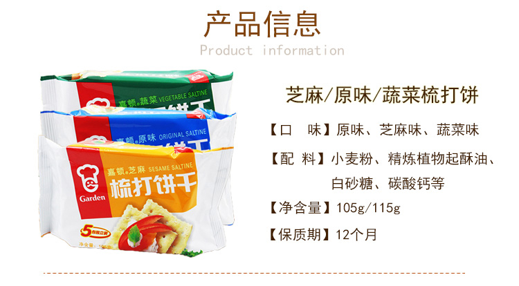 • 商品名称:嘉顿 蔬菜梳打饼干 115g 单位:包