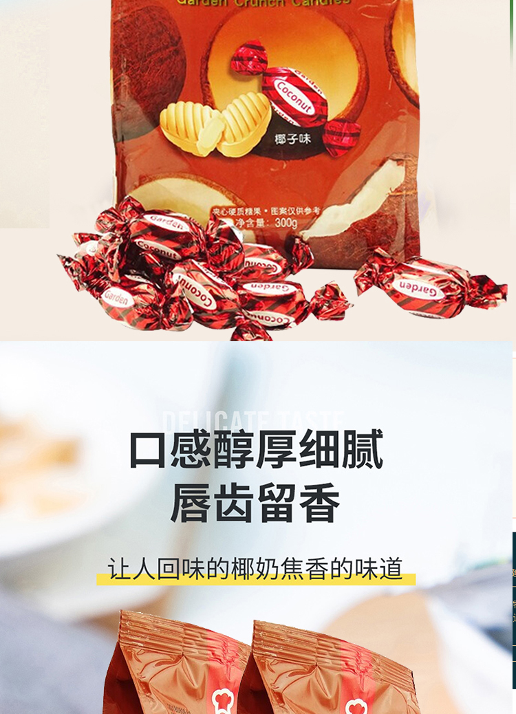 商品名称: 嘉顿 椰子味卡仑治糖 300g 单位:包