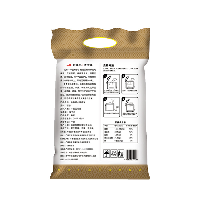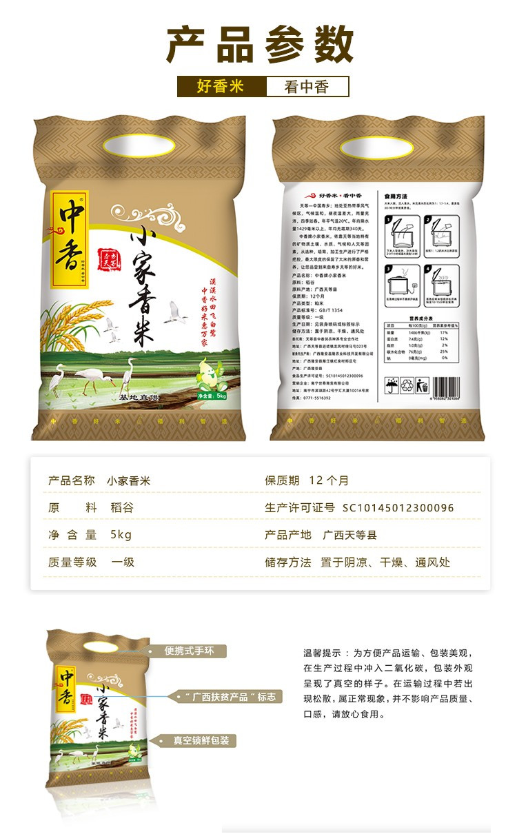 • 商品名称:中香 小家香米 长寿之乡天等大米长粒香米 5KG(单位:袋)真空包装
