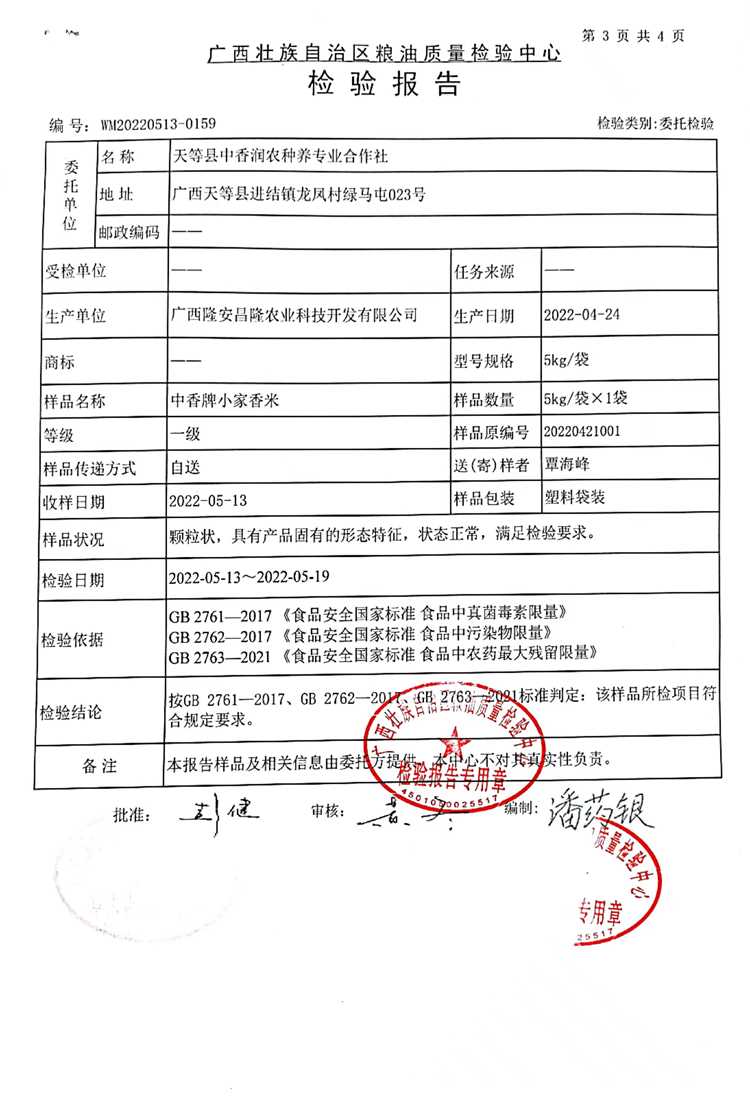 商品名称: 中香 小家香米 长寿之乡天等大米长粒香米 5KG(单位:袋)真空包装