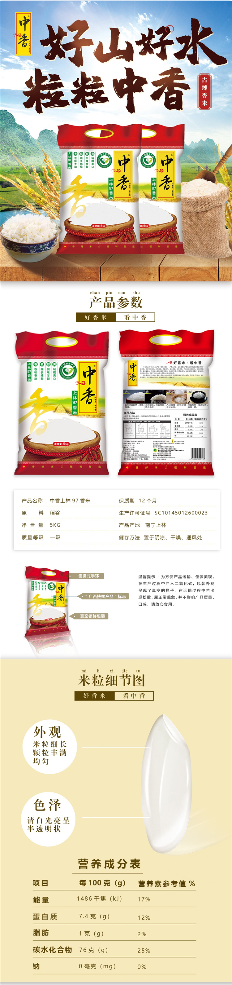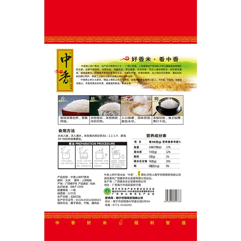 食品饮料  > 粮油调味  > 大米  >  中香  >  中香 上林97香米5KG 大米 白色(单位:袋)