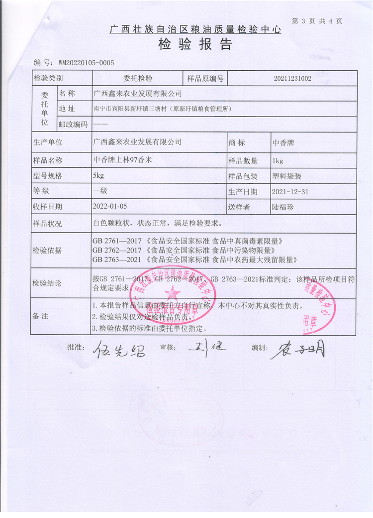 商品名称: 中香 上林97香米5KG 大米 白色(单位:袋)