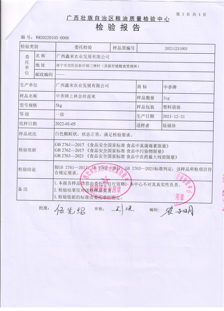 商品名称: 中香 上林金丝苗米5kg 大米 红色(单位:袋)