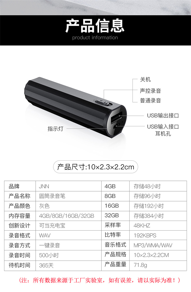 • 商品名称:JNN 16G录音笔 迷你声控录音器 黑色 单位:支