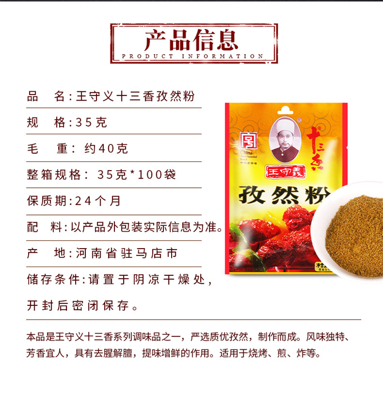 • 商品名称:王守义 35G 孜然粉(单位:包)