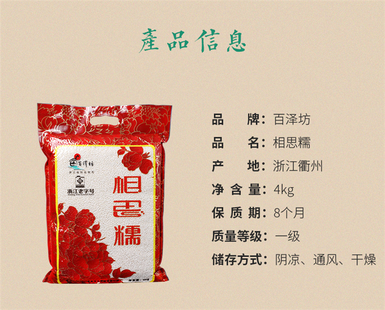 商品名称: 百泽坊 相思糯米8斤装(单位:袋)