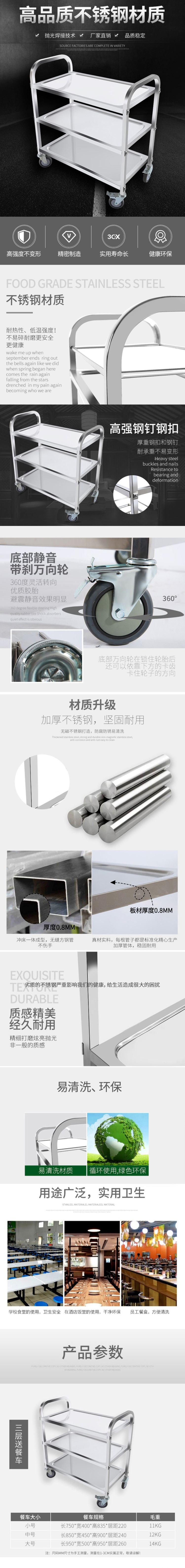 • 商品名称:AEY 不锈钢移动送餐车三层餐边手推车 0.8mm大号豪华款 (单位:台 ) 白色