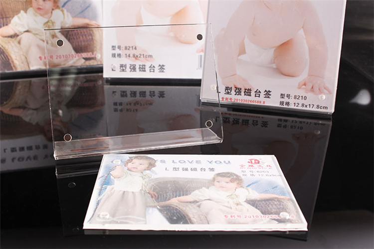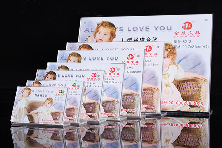 商品名称: 金雕 8201 6*9cm 横式 L型亚克力强磁台卡 透明 (单位:个)