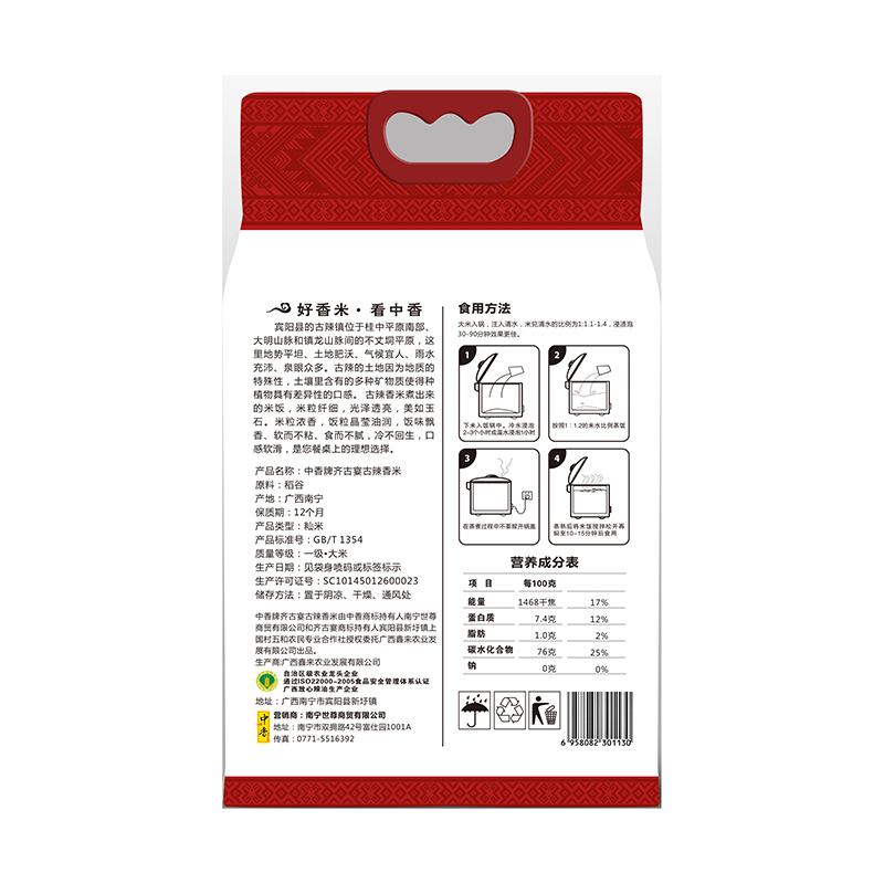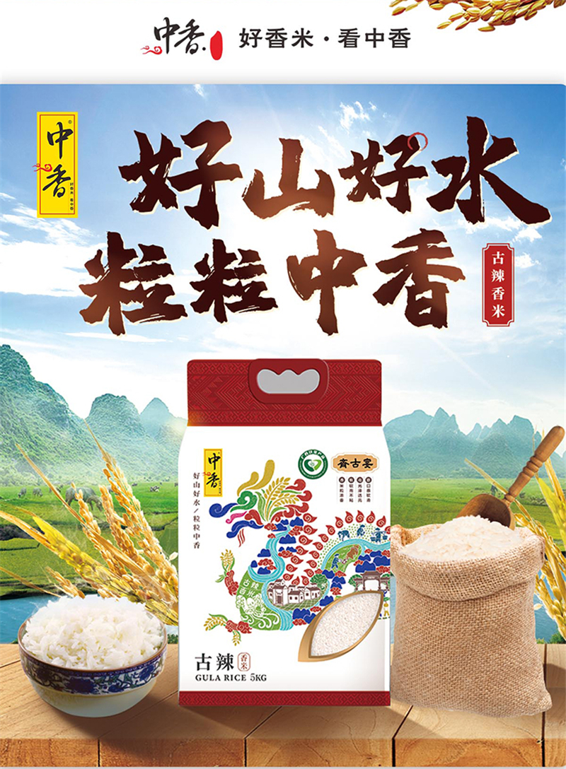 • 商品名称:中香 5KG齐古宴古辣 香米 广西古辣镇10斤装南方籼米长粒香米 红色(单位:袋)